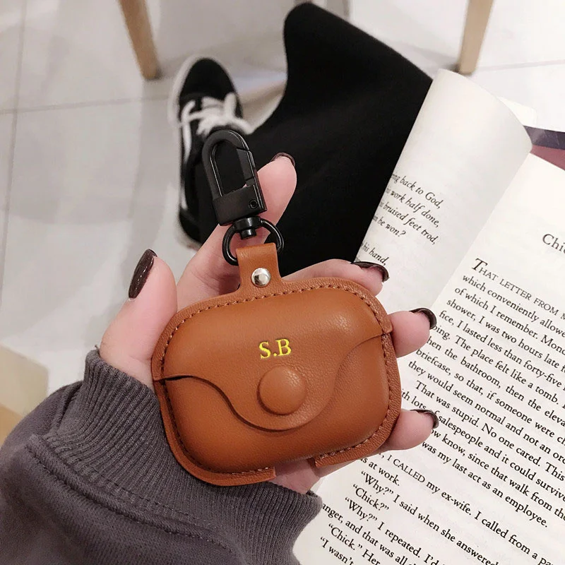 Custom Initials Leather AirPods Case with Clip – Personalized Name Case
